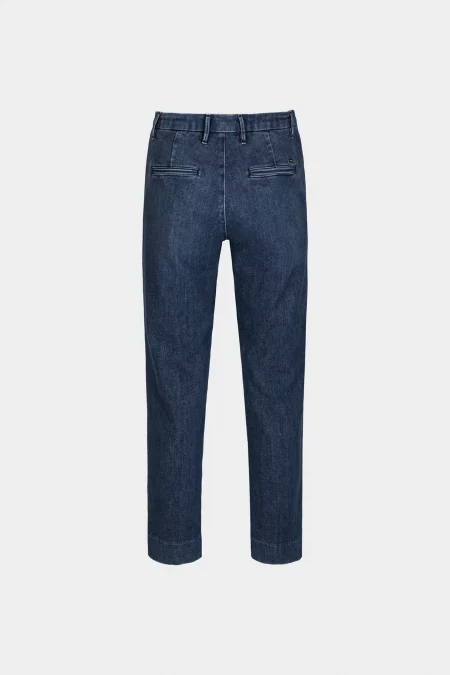 Interprete del modello chino, un pantalone sartoriale con tasca frontale taglio america e posteriore a soffietto. Realizzato in denim comfort in tono blue medio. Una scelta formale ed elegante, la gamba รจ dritta per una vestibilitร regular. Rilassata sui fianchi e forma delicatamente affusolata lungo le gambe, arriva sopra le […]