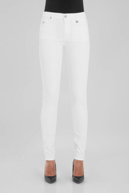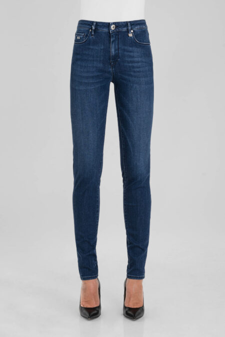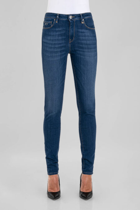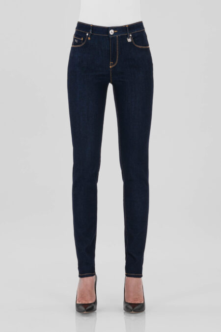 Un jeans slim modellante, con vita media e gamba super avvolgente, vestibiltร che esalta la silhouette femminile. Jeans personalizzato con il lettering Tramarossa applicato sullโetichetta posteriore in pelle suede, il tag T sulla tasca posteriore destra e il ricercato bottone gioiello.ย ย