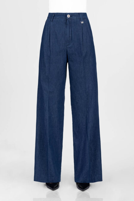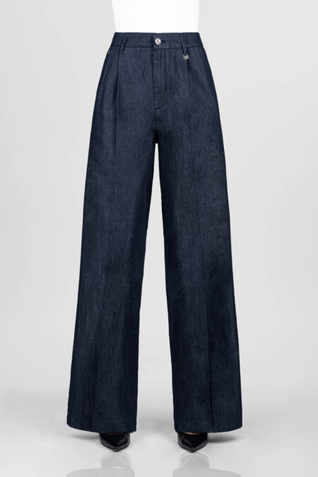 Pantalone sartoriale a gamba larga realizzato in denim comfort, tasca frontale taglio america e posteriore a soffietto. Fit contemporaneo, vita medio alta avvolgente, rilassato sui fianchi, gamba che si ampia sulla caviglia.ย Etichetta posteriore in pelle scamosciata e lettering Tramarossa applicato a mano Ricamo floreale interno fintaย Rivetto T sulla […]