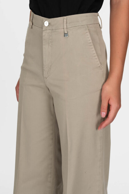 Pantalone sartoriale a gamba larga realizzato in denim comfort, tasca frontale taglio america e posteriore a soffietto. Fit contemporaneo, vita medio alta avvolgente, rilassato sui fianchi, gamba che si ampia sulla caviglia.ย Etichetta posteriore in pelle scamosciata e lettering Tramarossa applicato a mano Ricamo floreale interno fintaย Rivetto T sulla […]