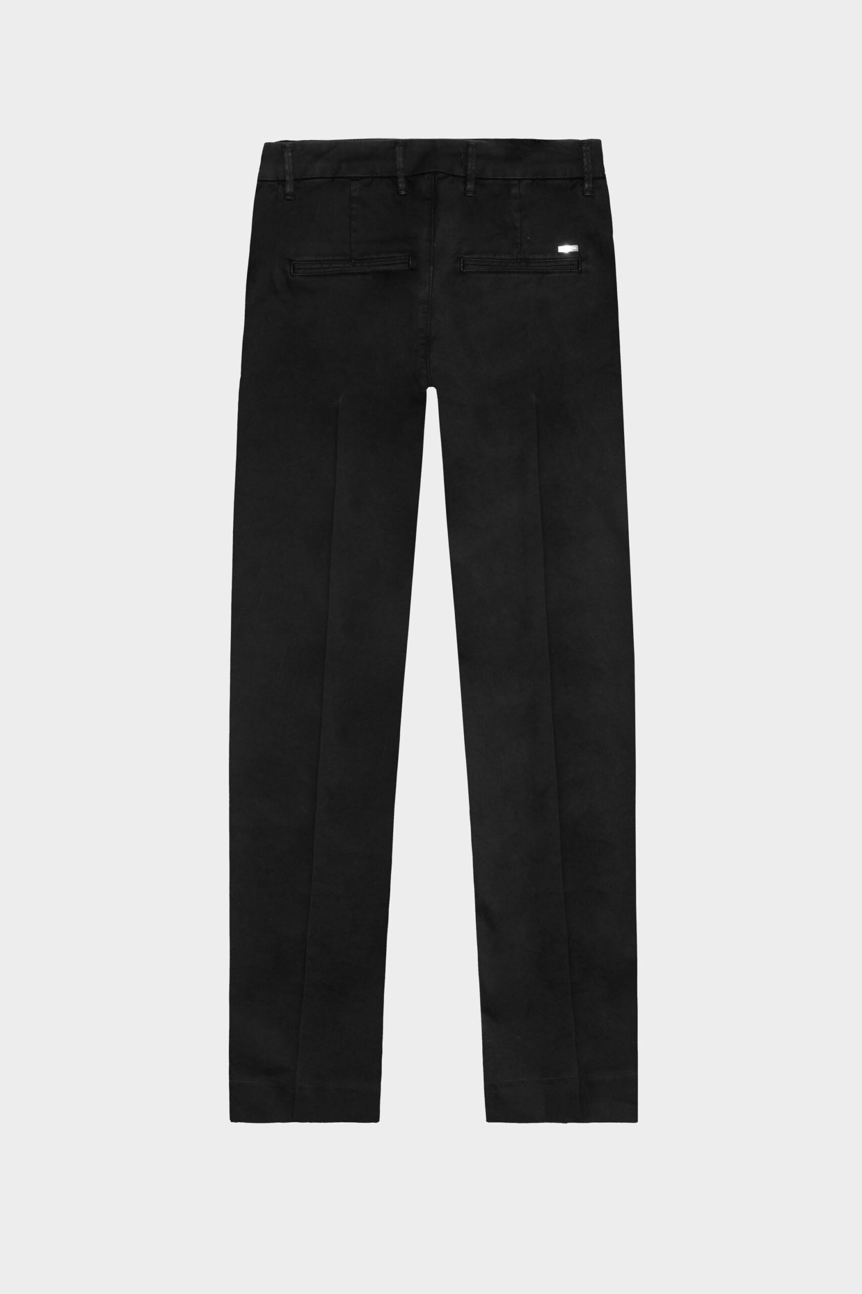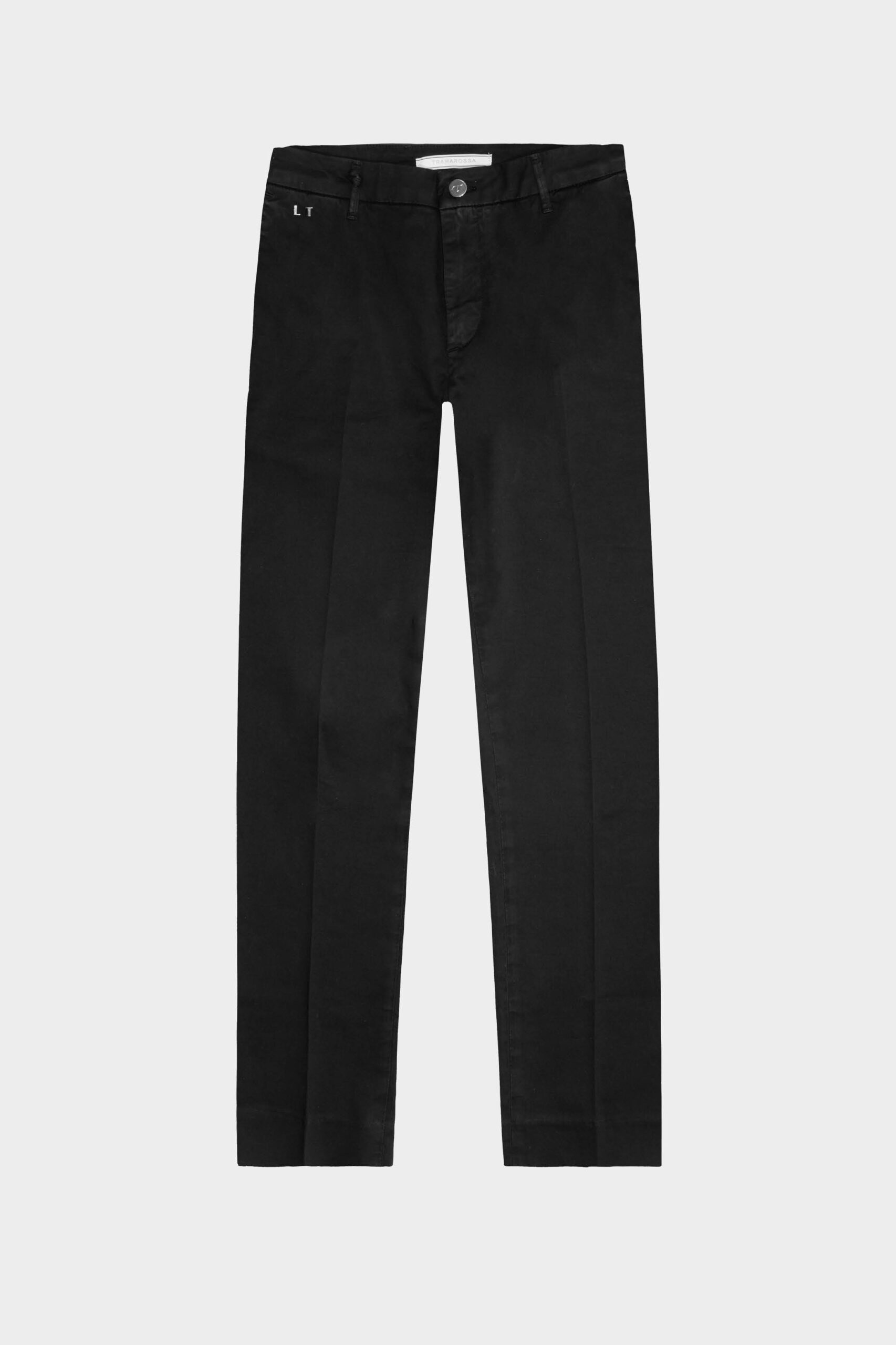 An performer of the chino style, a tailored pant with America-cut front pocket and gusseted back. Made of comfort denim in a medium blue tone. A formal and elegant choice, the leg is straight for a regular fit. Relaxed at the hips and gently tapered shape down the legs, it reaches above the ankles.