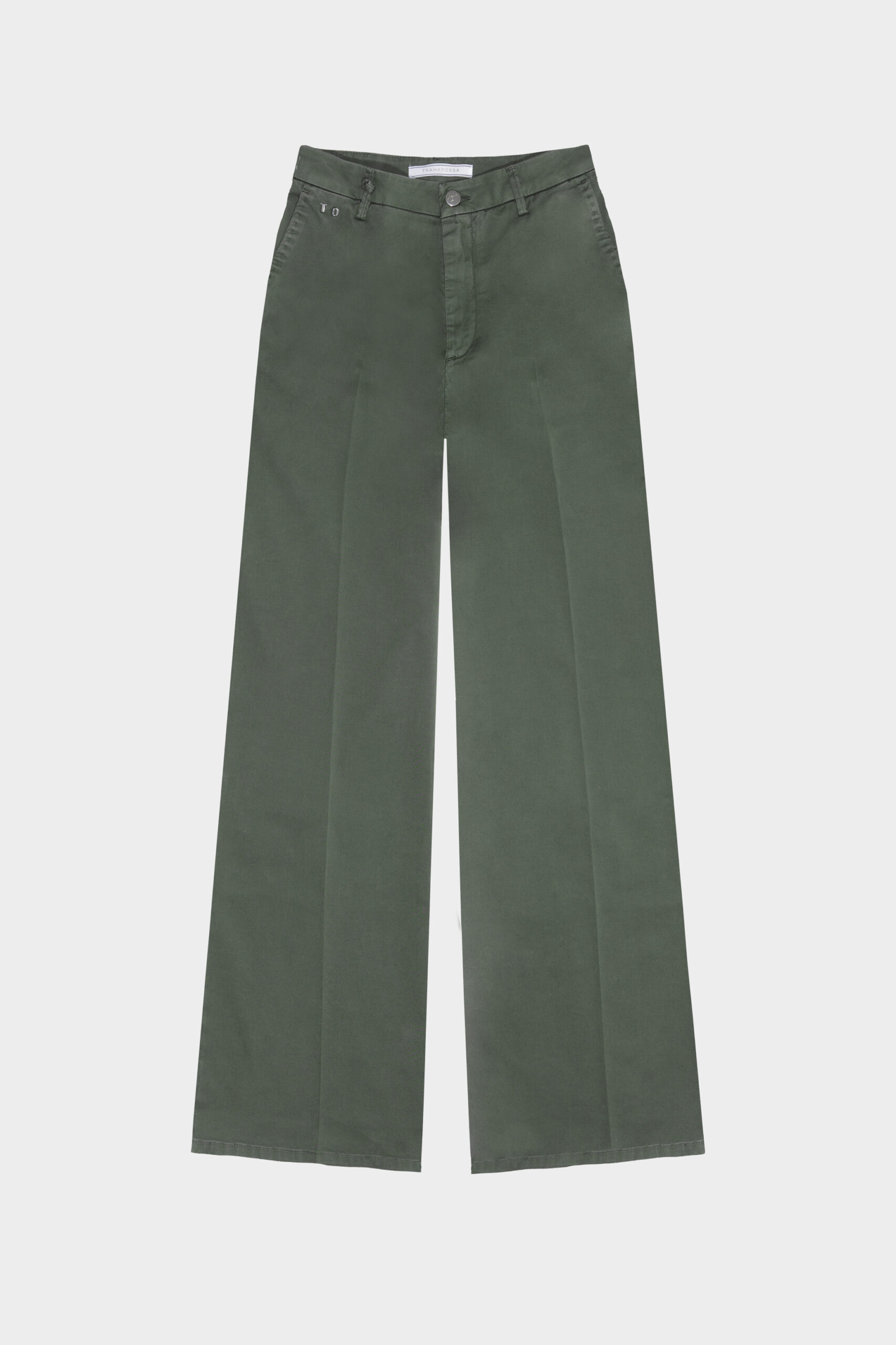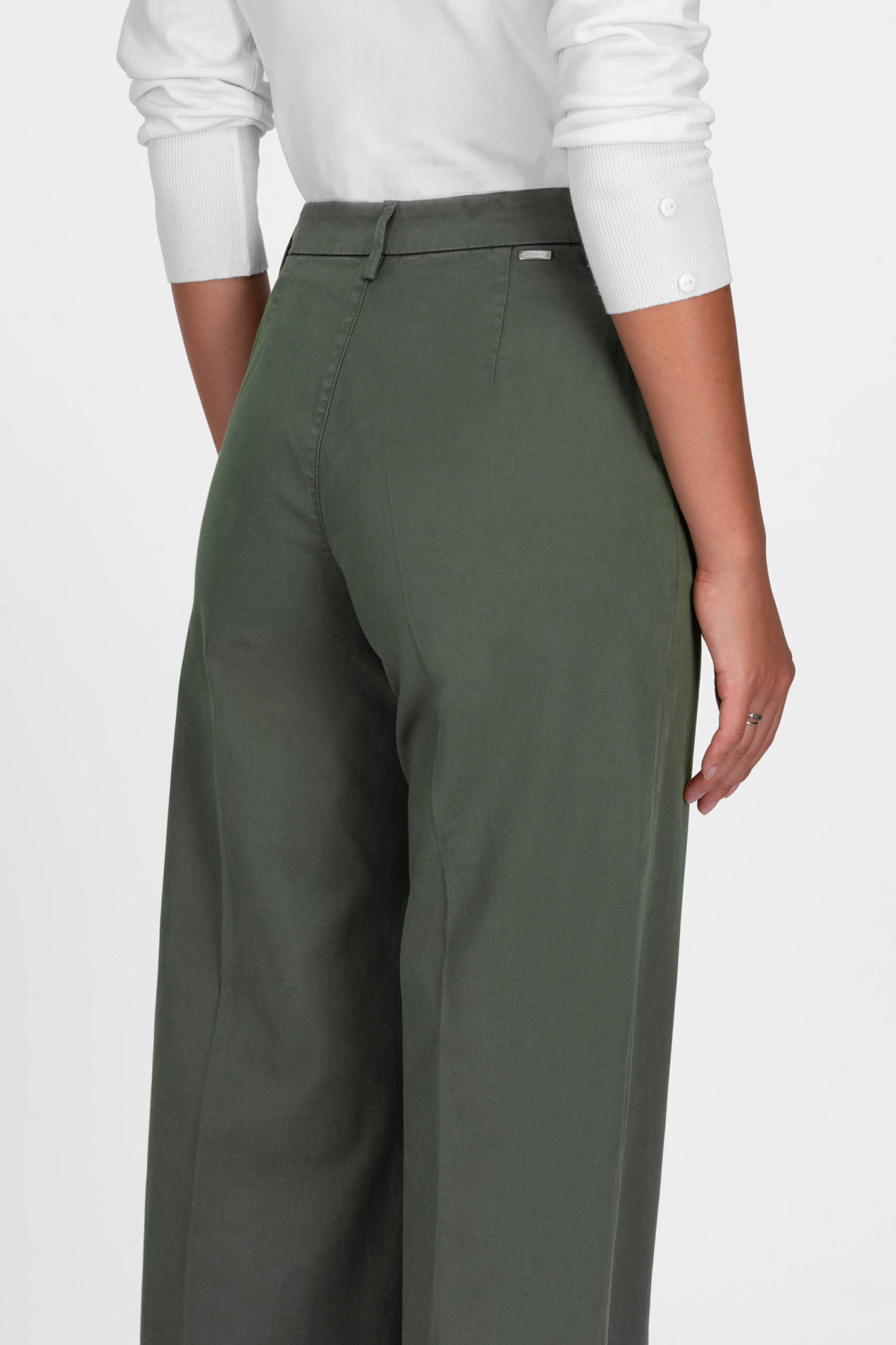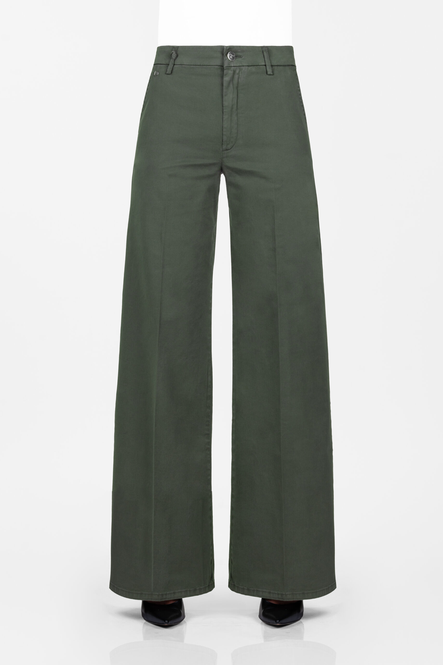 AMELIA WIDE LEG PANTS IN GREEN COTTON GABARDINE