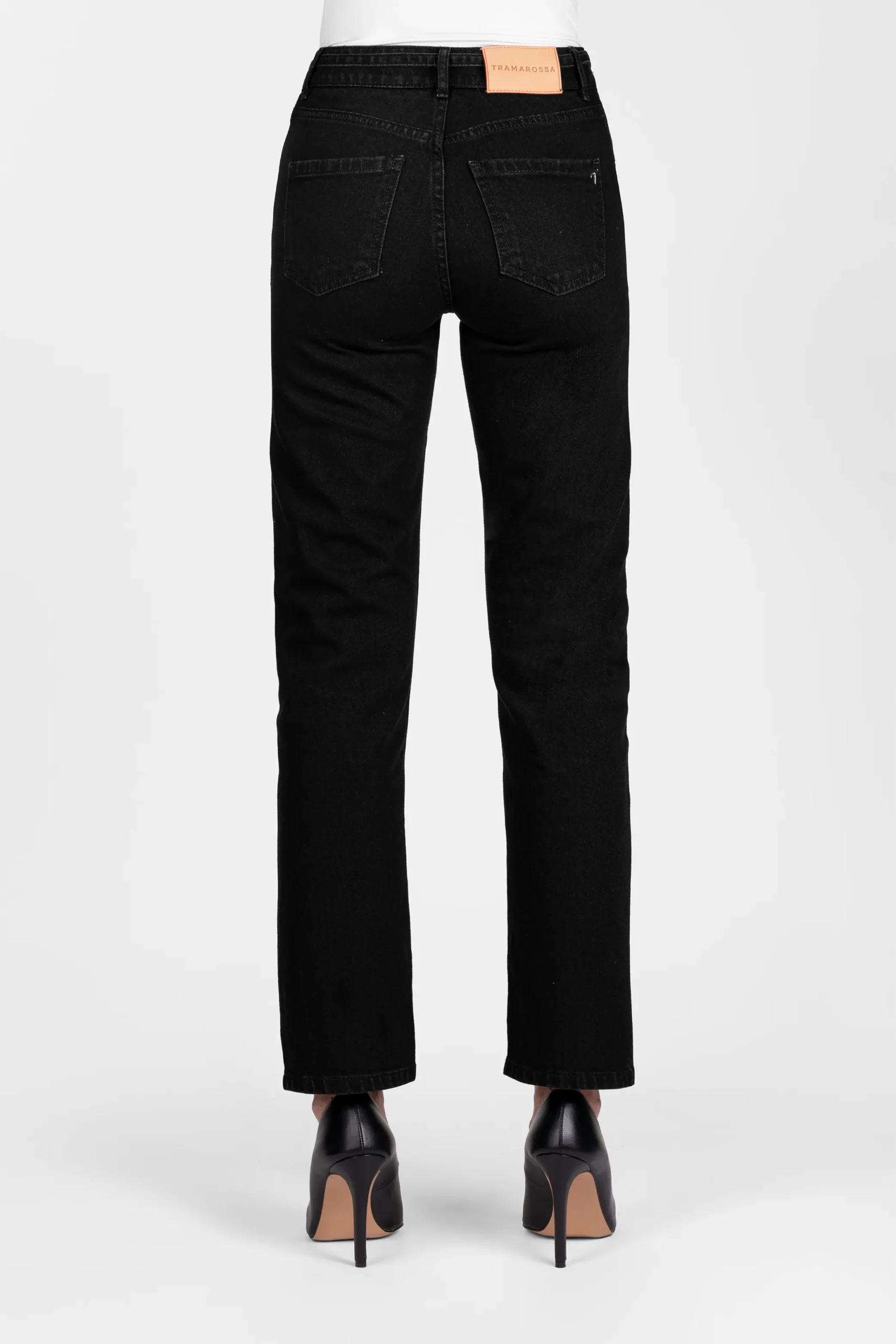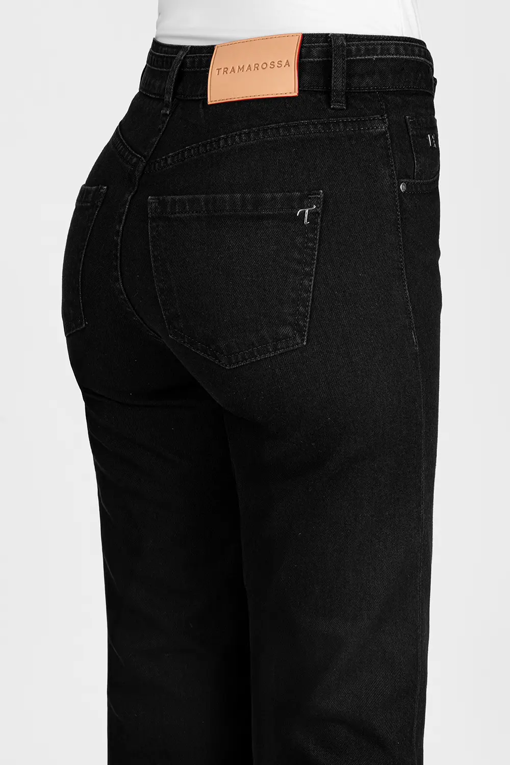 • Etichetta posteriore in pelle scamosciata e lettering Tramarossa applicato a mano