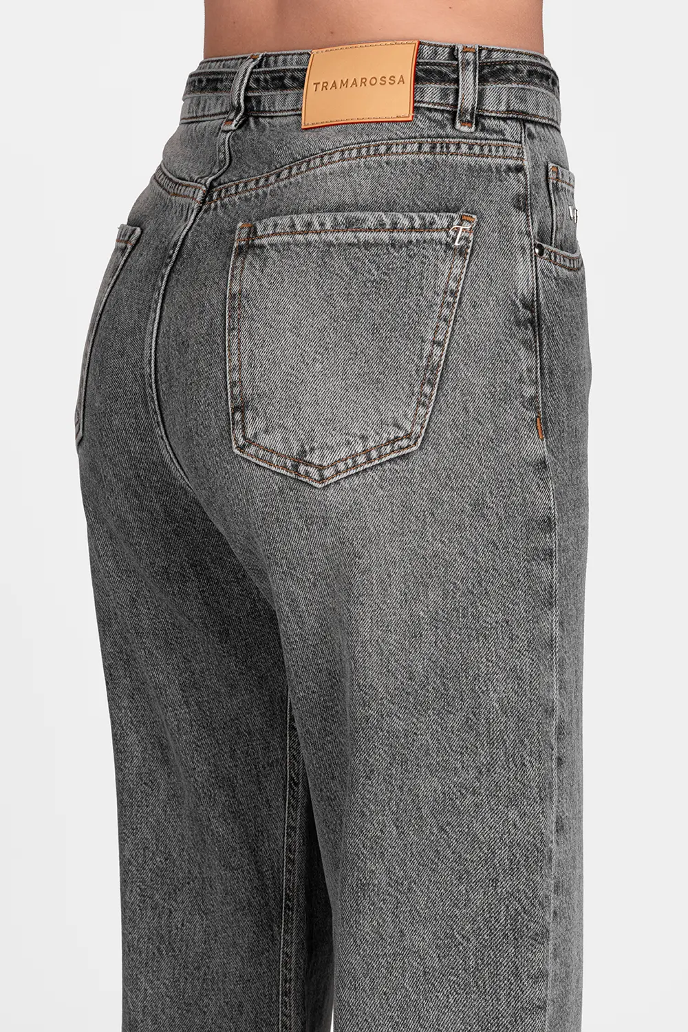 • Etichetta posteriore in pelle scamosciata e lettering Tramarossa applicato a mano