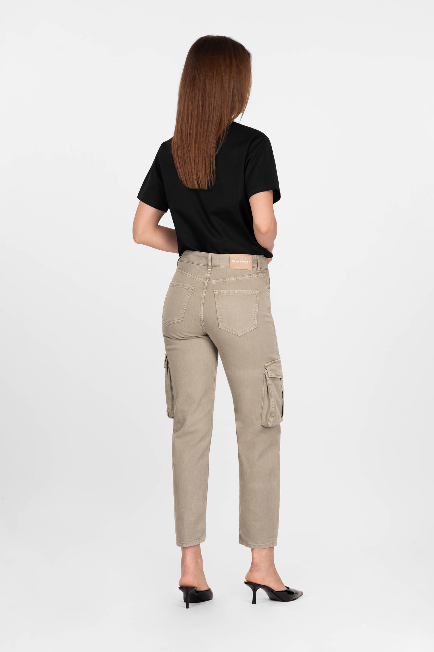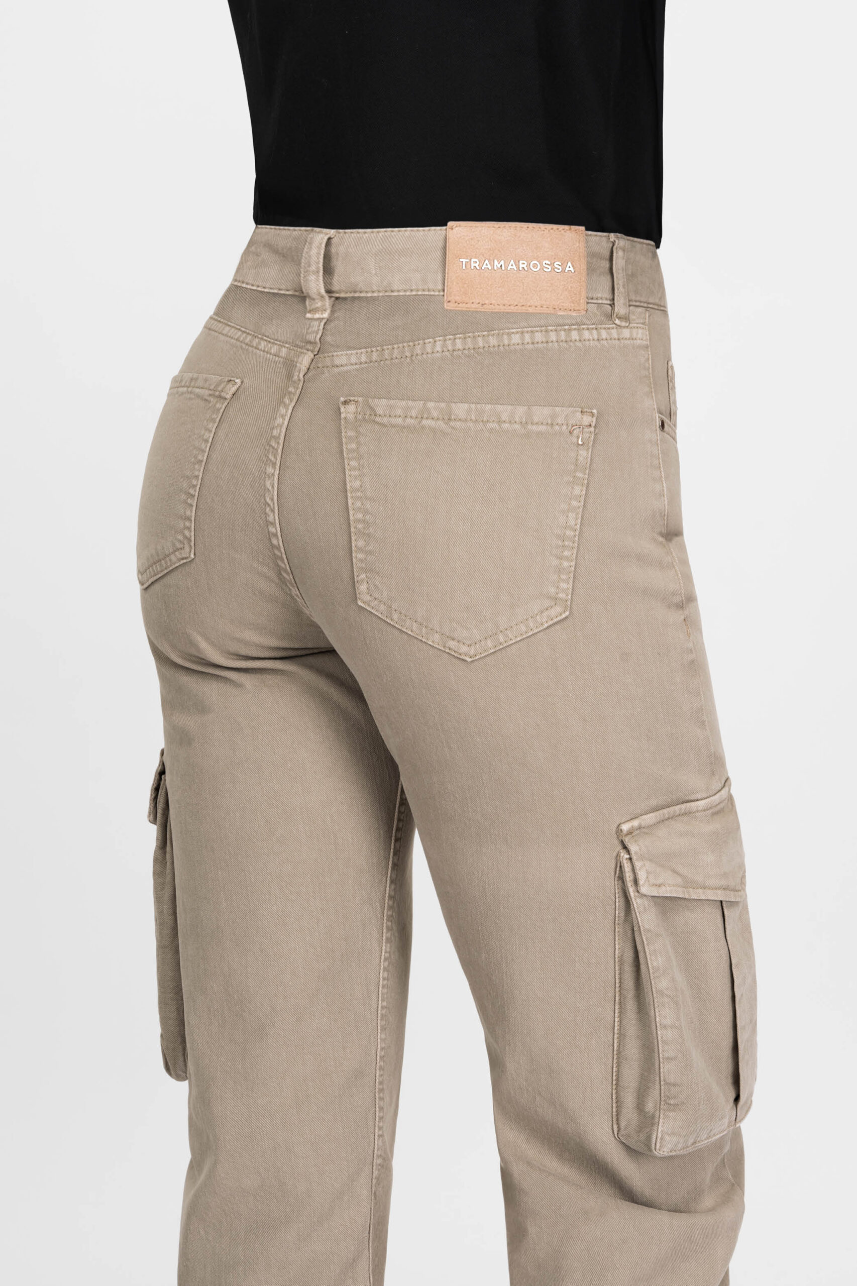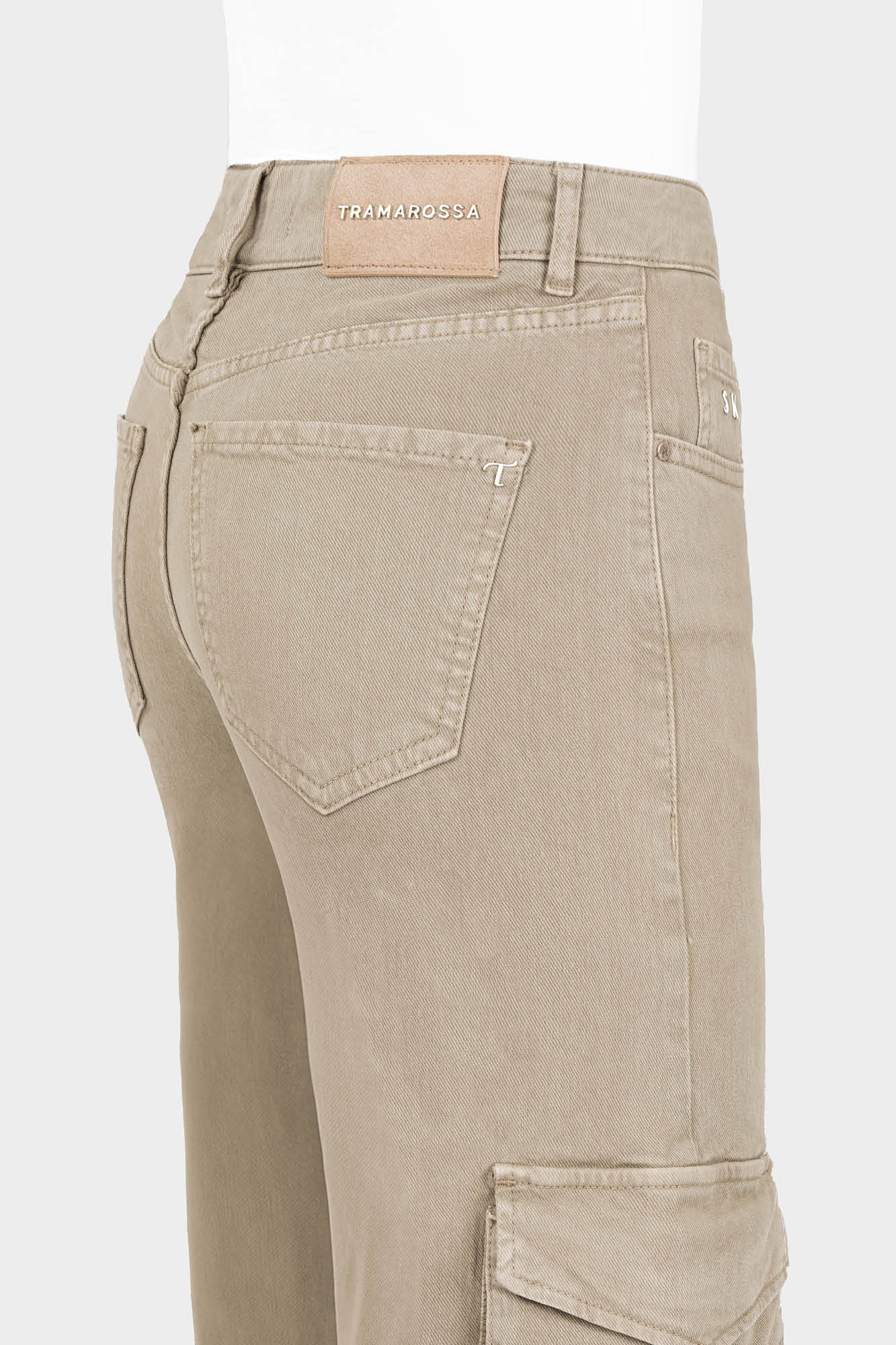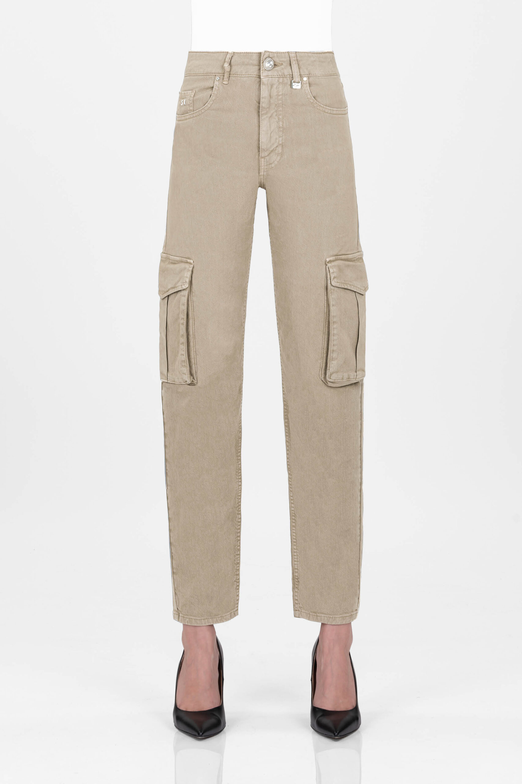 PANTALONE MONICA POCKET CARGO IN BULL DI COTONE BEIGE