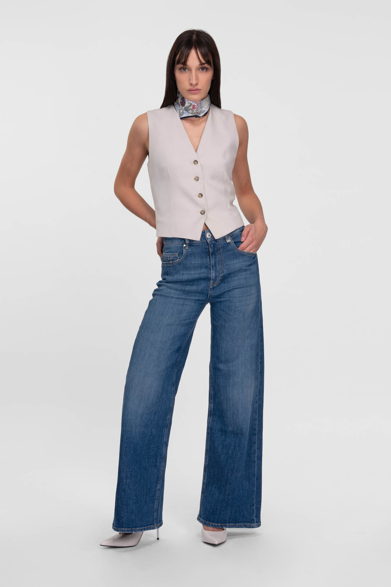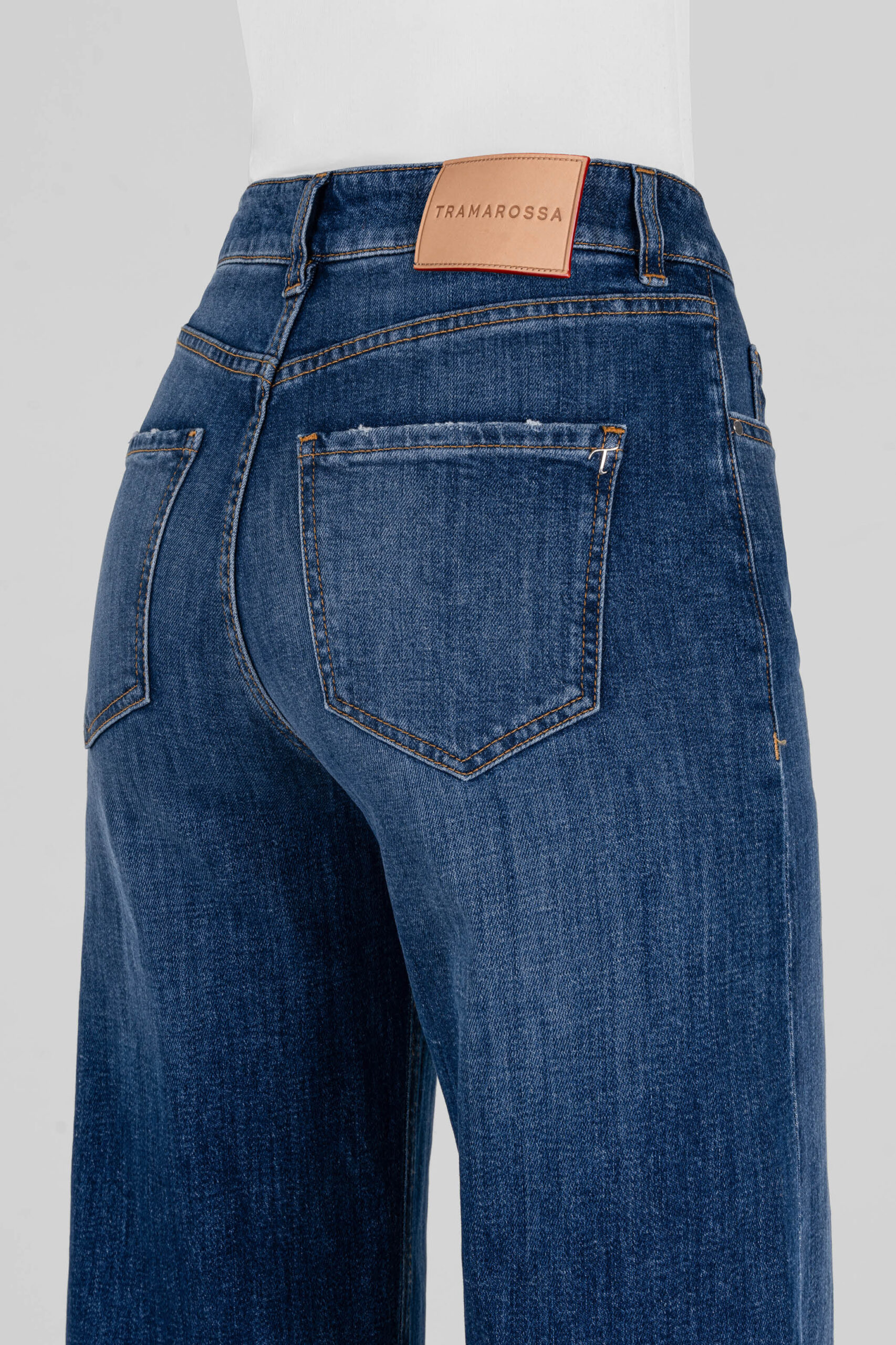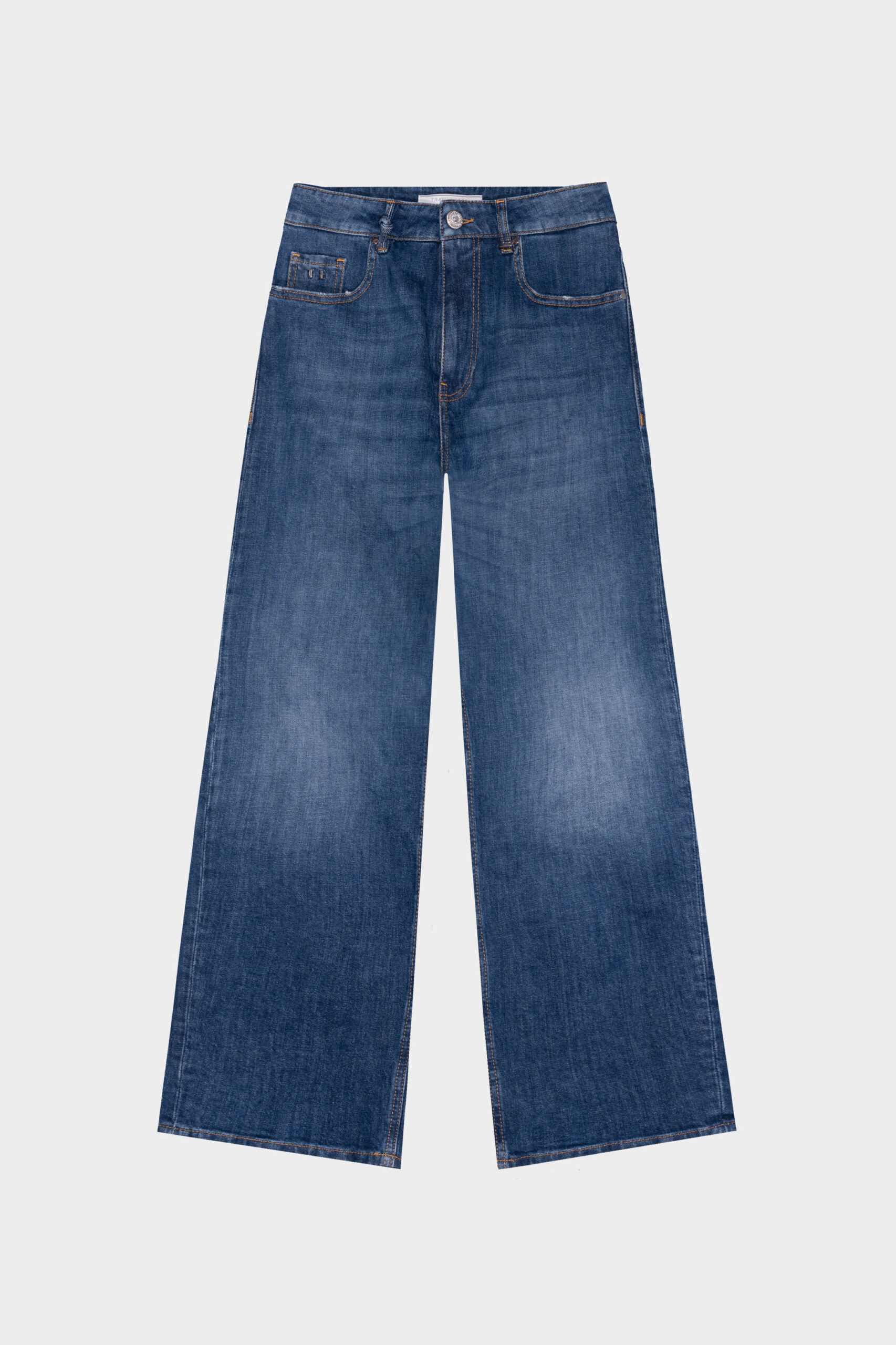 High-waisted five-pocket, loose fit, extra wide leg, regular length. Made with original and exclusive comfort fabrics, it is an authentic and contemporary choice.
