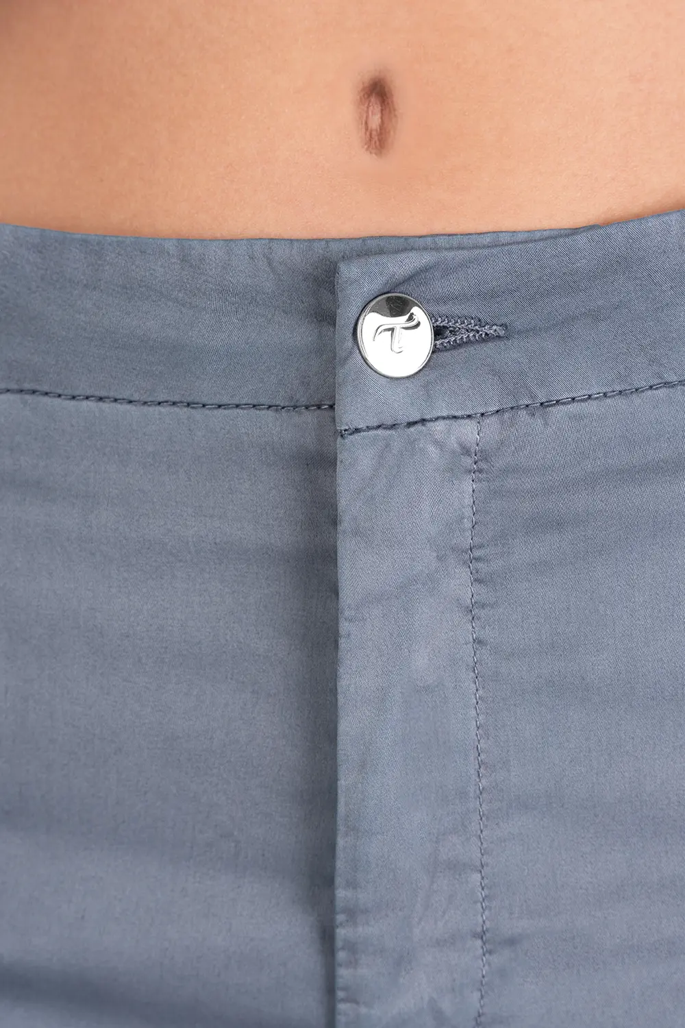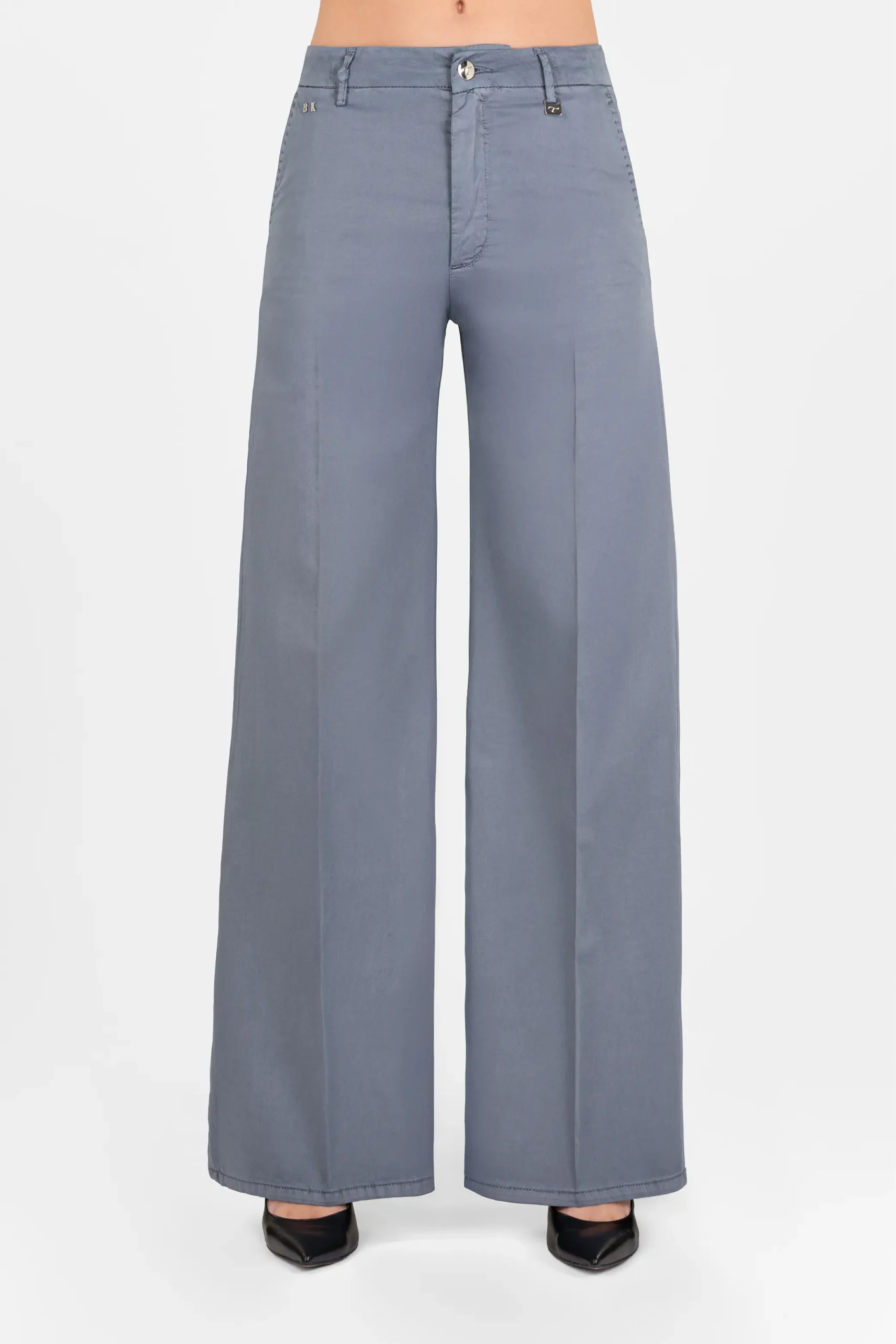 PANTALONE AMELIA WIDE LEG IN GABARDINA DI COTONE BLU MEDIO