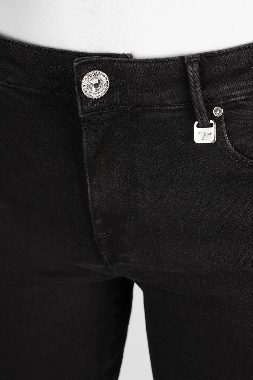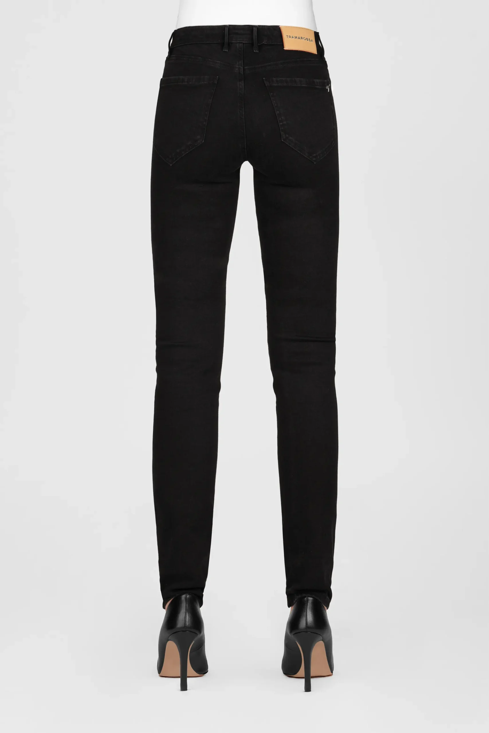 Un jeans slim modellante, con vita media e gamba super avvolgente, vestibiltà che esalta la silhouette femminile. Jeans personalizzato con il lettering Tramarossa applicato sull’etichetta posteriore in pelle suede, il tag T sulla tasca posteriore destra e il ricercato bottone gioiello.