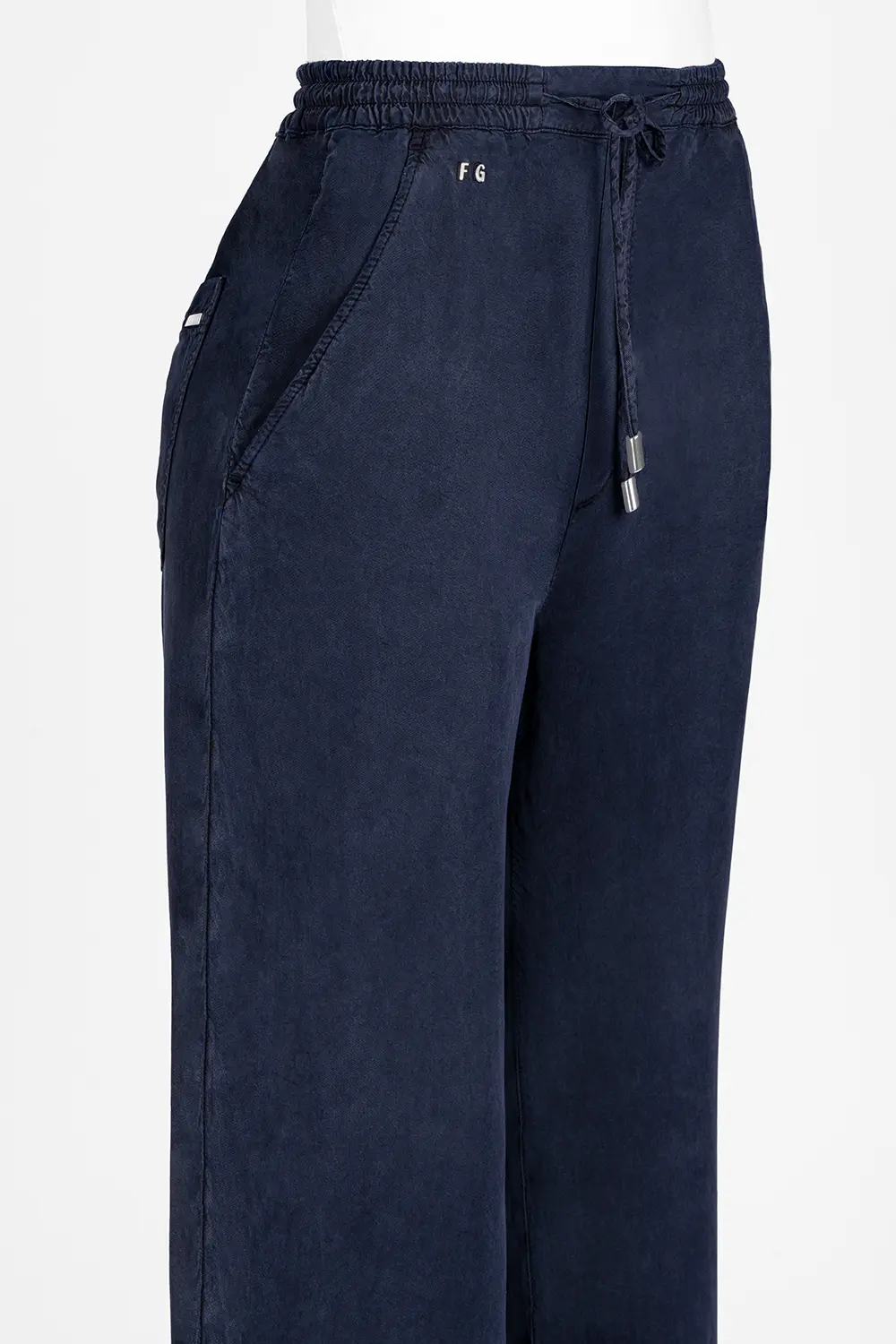 PANTALONE MARY LOOSE IN COTONE SUPER LEGGERO BLU MEDIO
