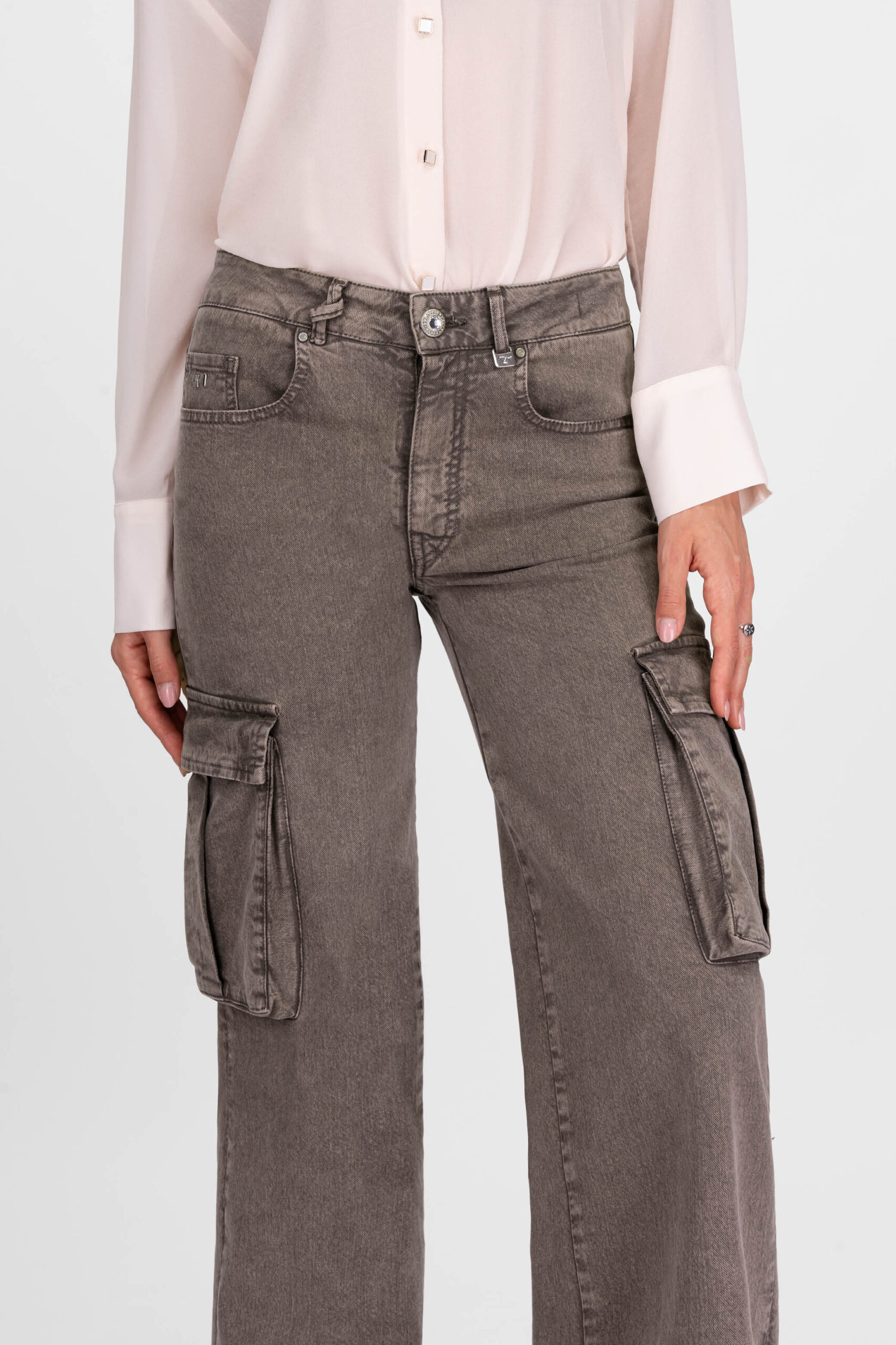 Jeans dalla vestibilità morbida, gamba dritta e ampia fino al fondo. La vita è medio alta, lunghezza gamba che copre la scarpa, perfetta per i tacchi. Un modello boyfriend con un upgrade di modernità, grazie alle grandi tasche laterali applicate a metà gamba. Cinque tasche realizzato con tele comfort che ne sottolineano la grande comodità.