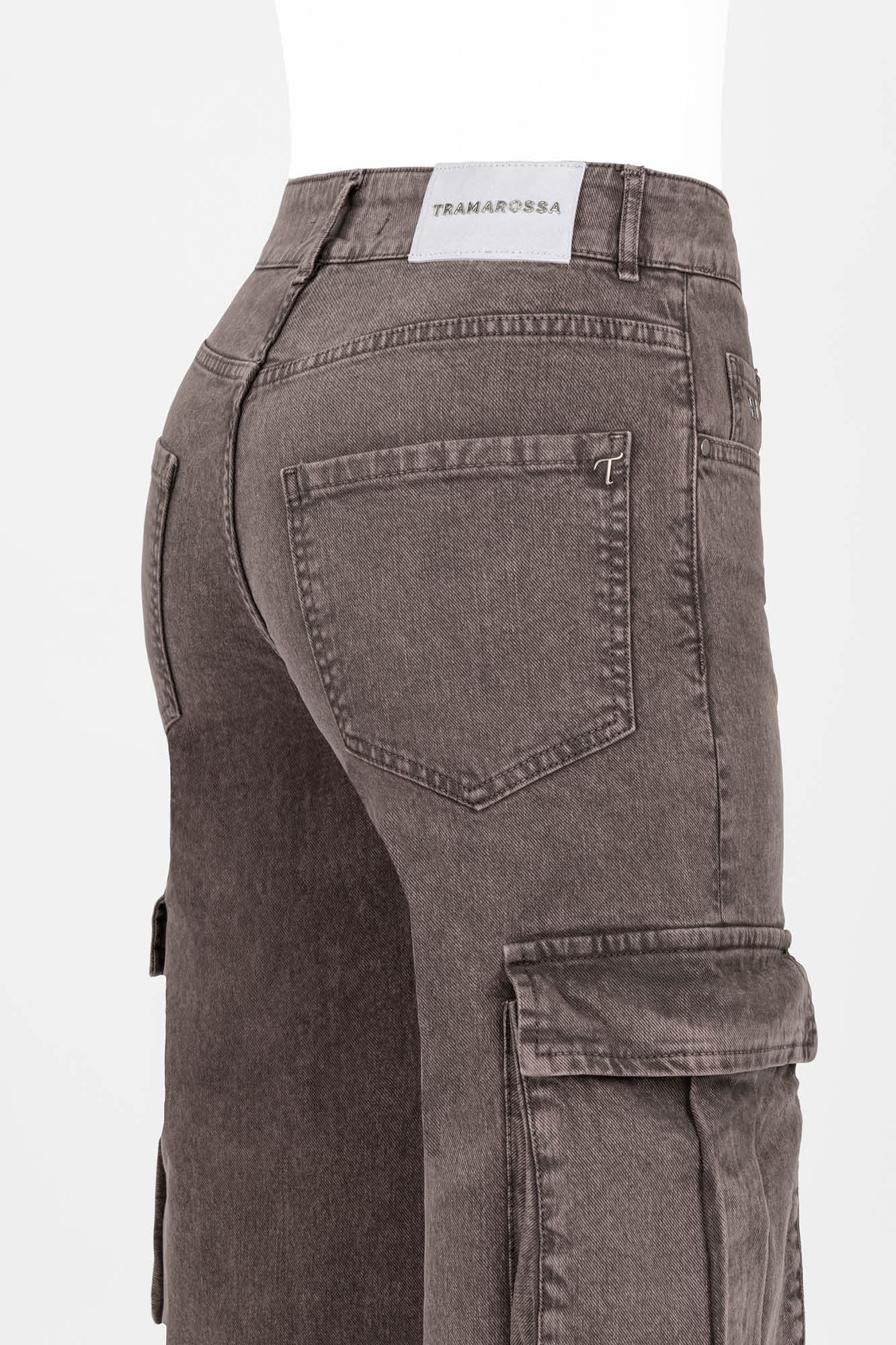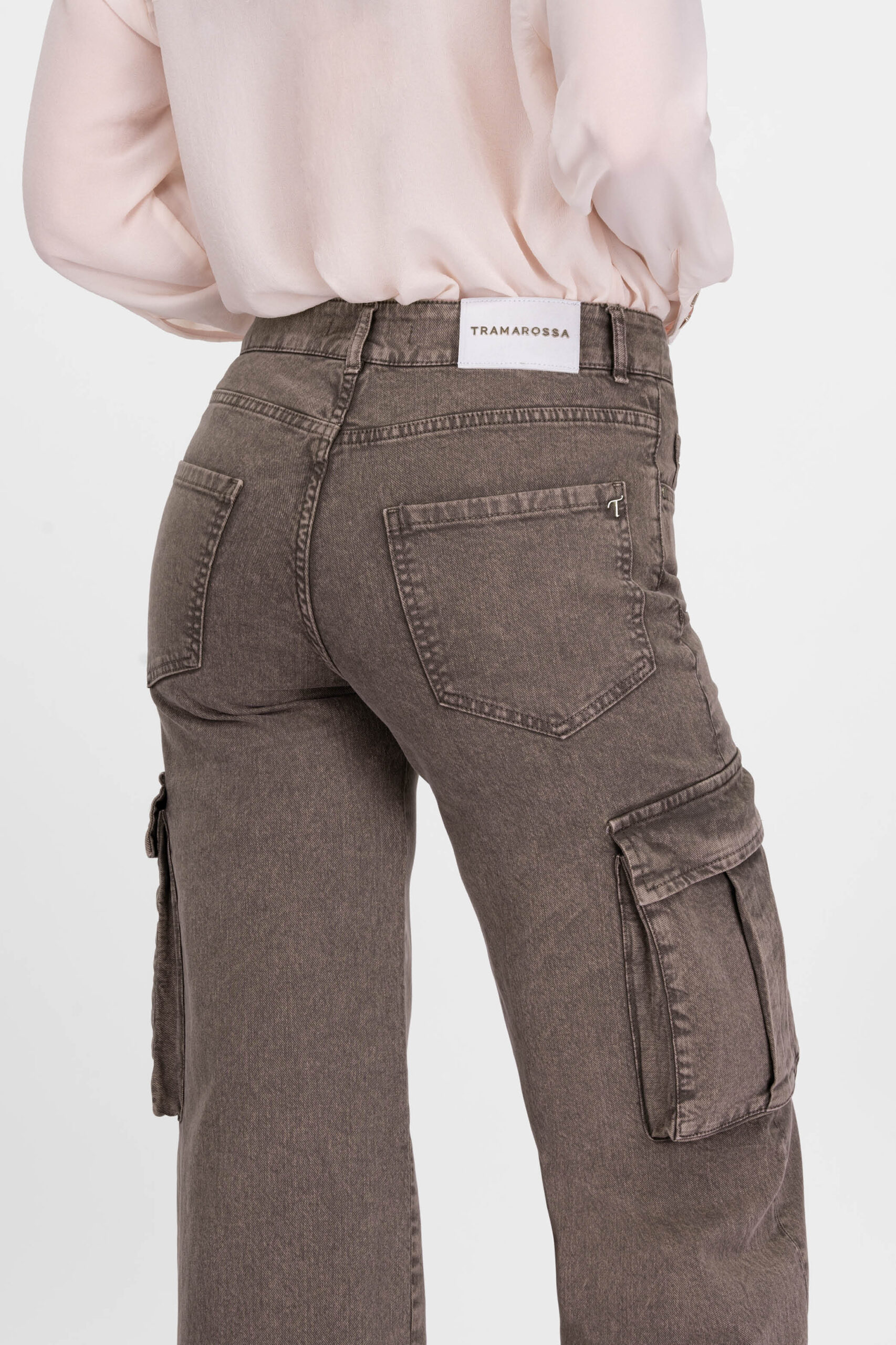 • Etichetta posteriore in pelle scamosciata e lettering Tramarossa applicato a mano