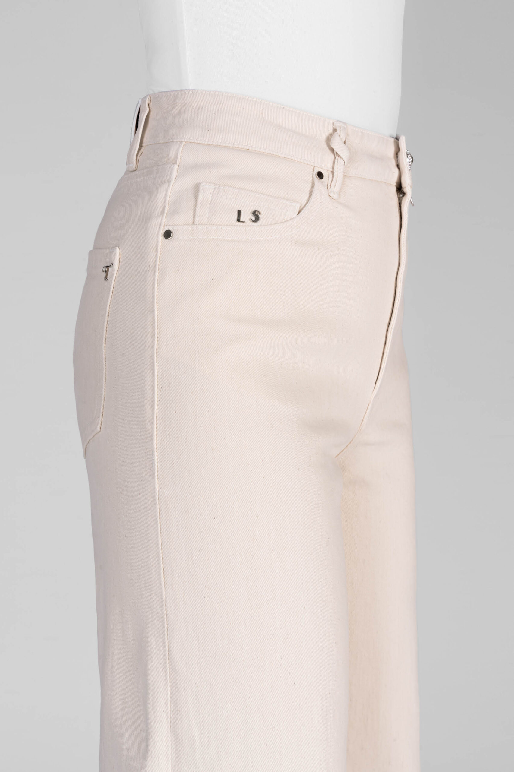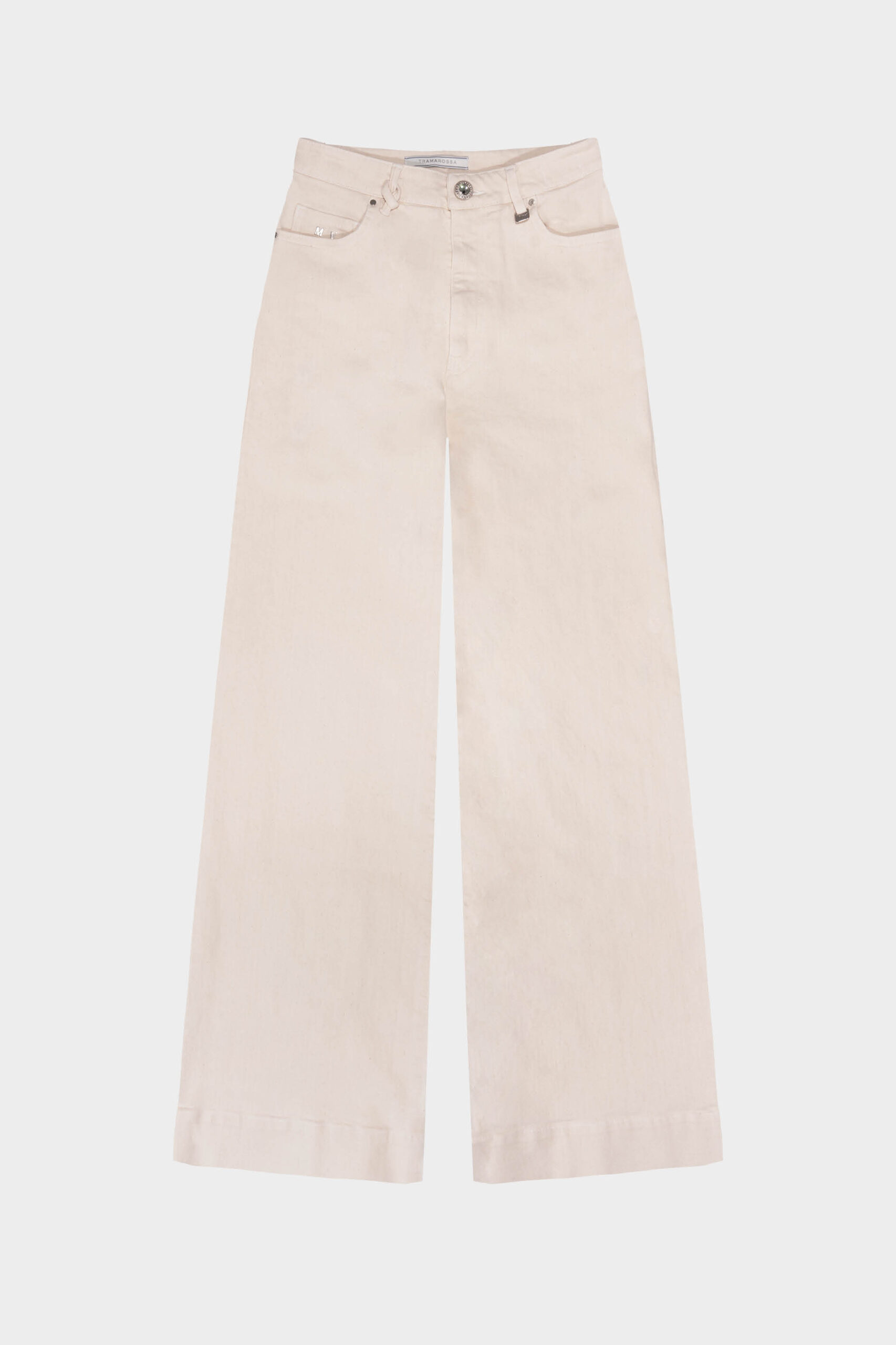 PANTALONE VIOLA WIDE LEG IN BULL DI COTONE BEIGE