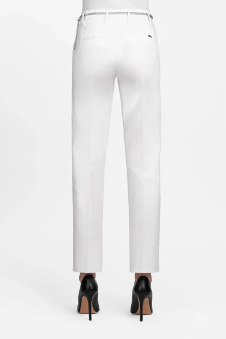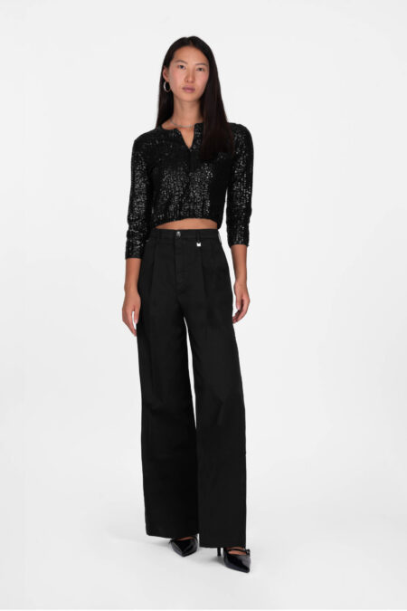 Tailored wide-leg pants with front pleats, made of comfort denim, america-cut front pocket and bellows pocket in the back. Contemporary fit, tight mid-high waist, relaxed at the hips, leg enlarges at the ankle. Suede back label and hand-applied Tramarossa lettering On the internal pant’s hy floral embroidery Rivet “T” on […]