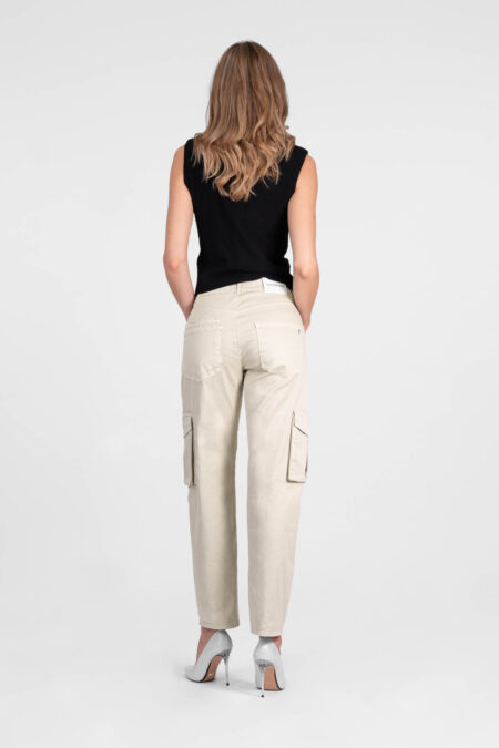 A contemporary five-pocket, mum fit, soft over the whole leg, slightly narrower at the bottom with ankle length. Embellished with vertical seam construction along the whole length of the leg and patch pockets at the sides. Details to which is added the overlapping of patch pockets on the back. Gabardine […]